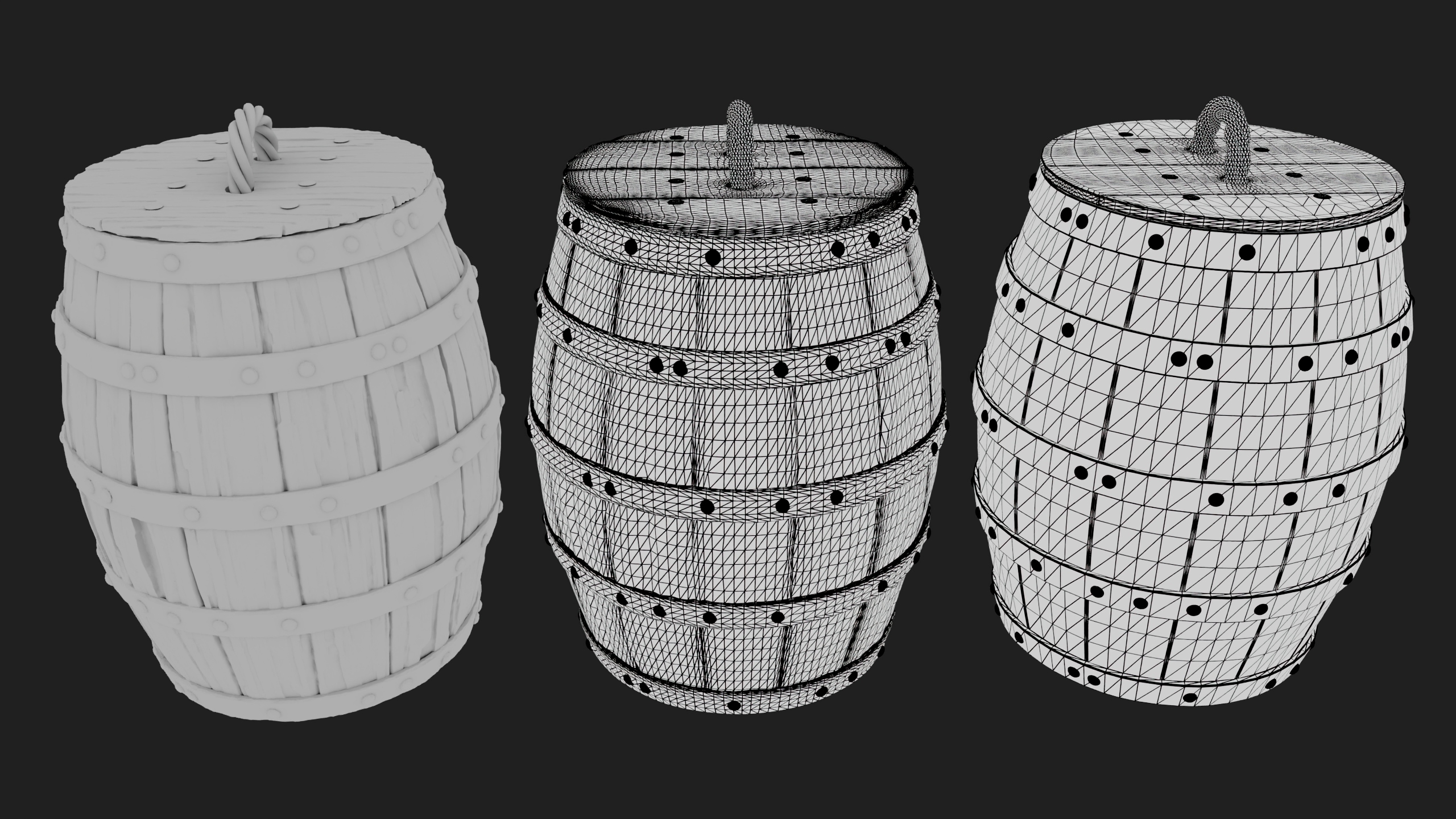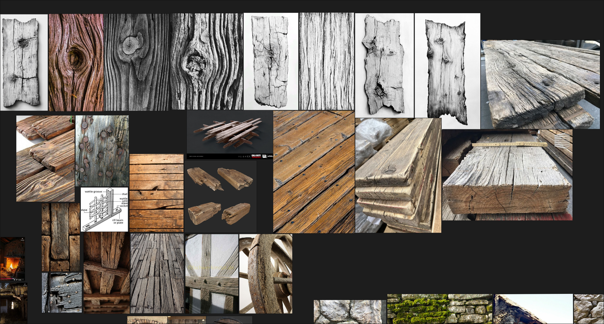 ■ Substance Painter high-to-low bakes + worn wood/metal materials.