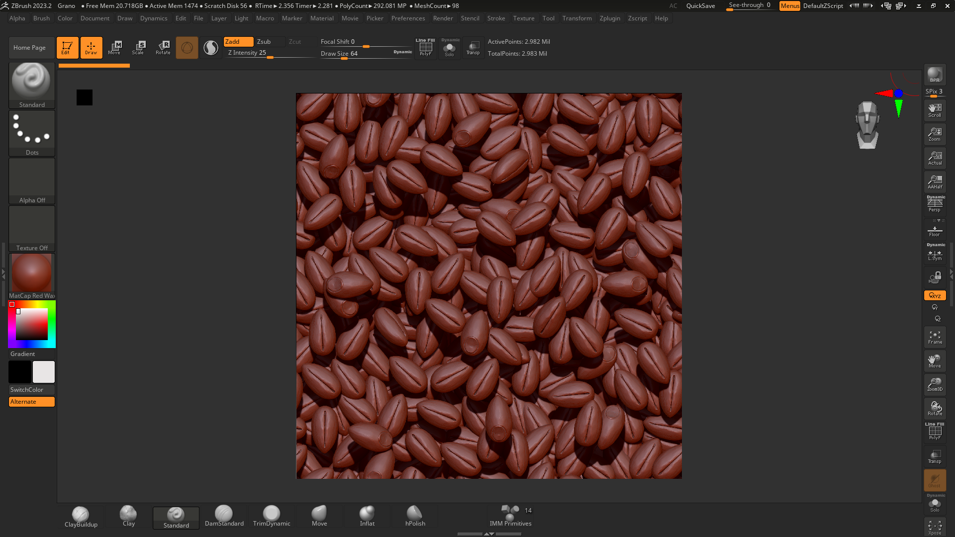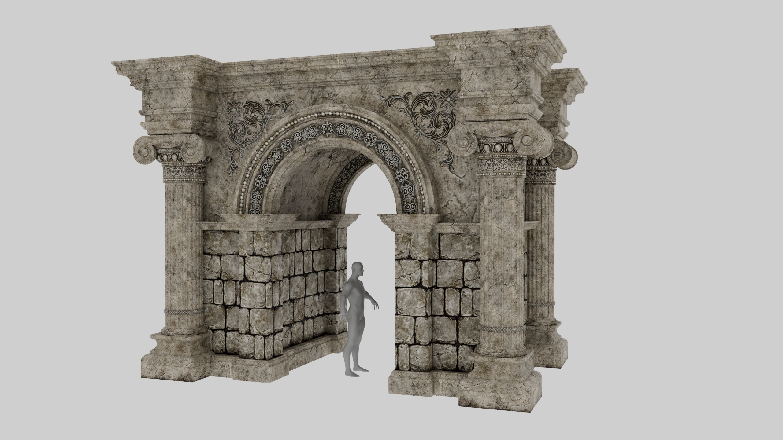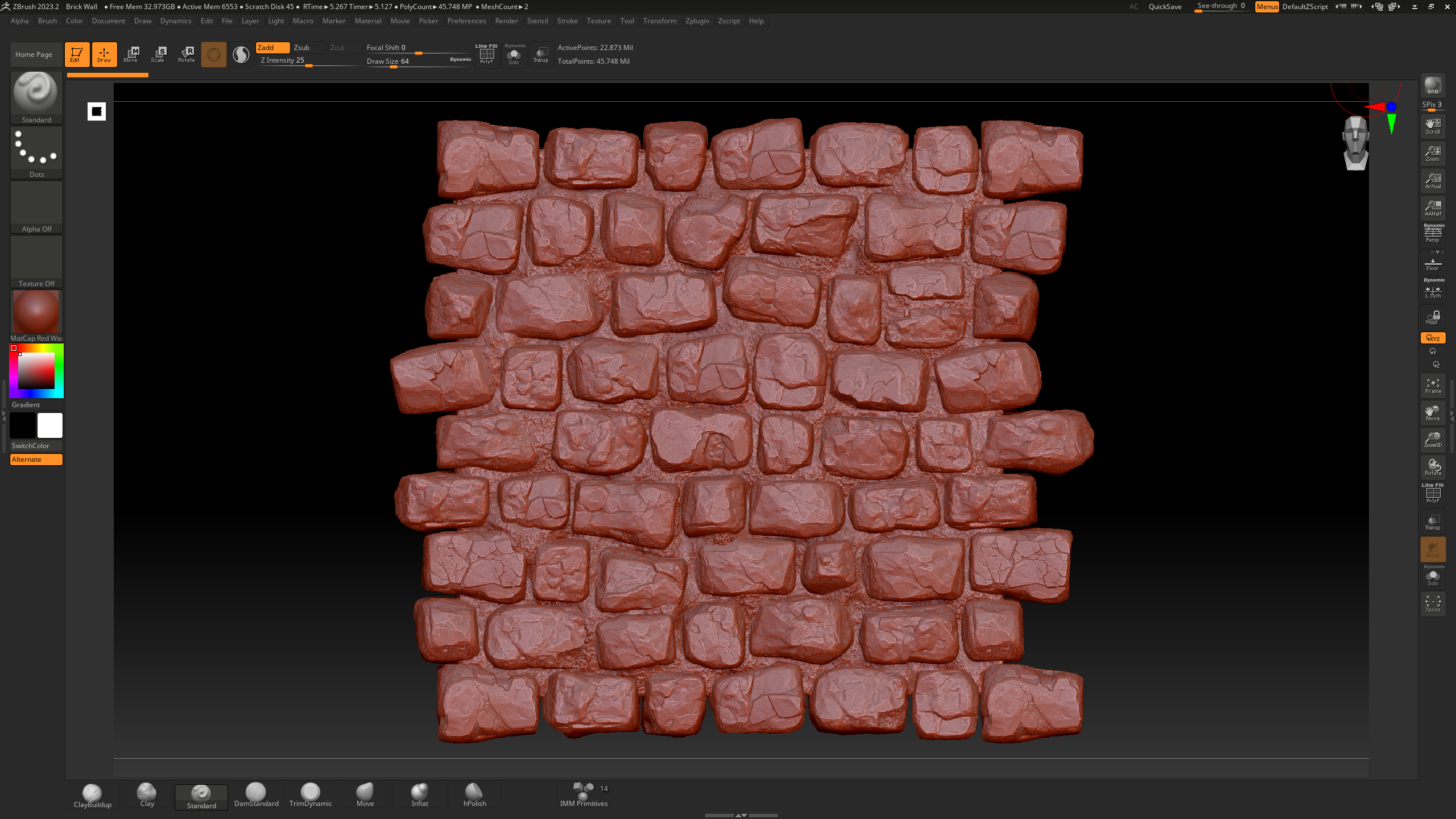 I started by sculpting the bricks directly in ZBrush, then used a sculpt plane to create the mortar between the joints.