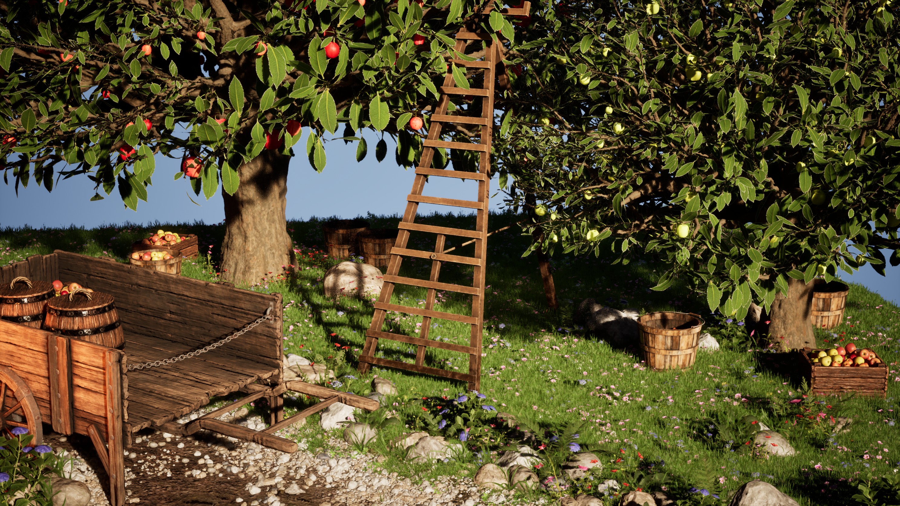 A little orchard scene where I practiced a full game-ready asset pipeline – from sculpt to final UE5 integration.