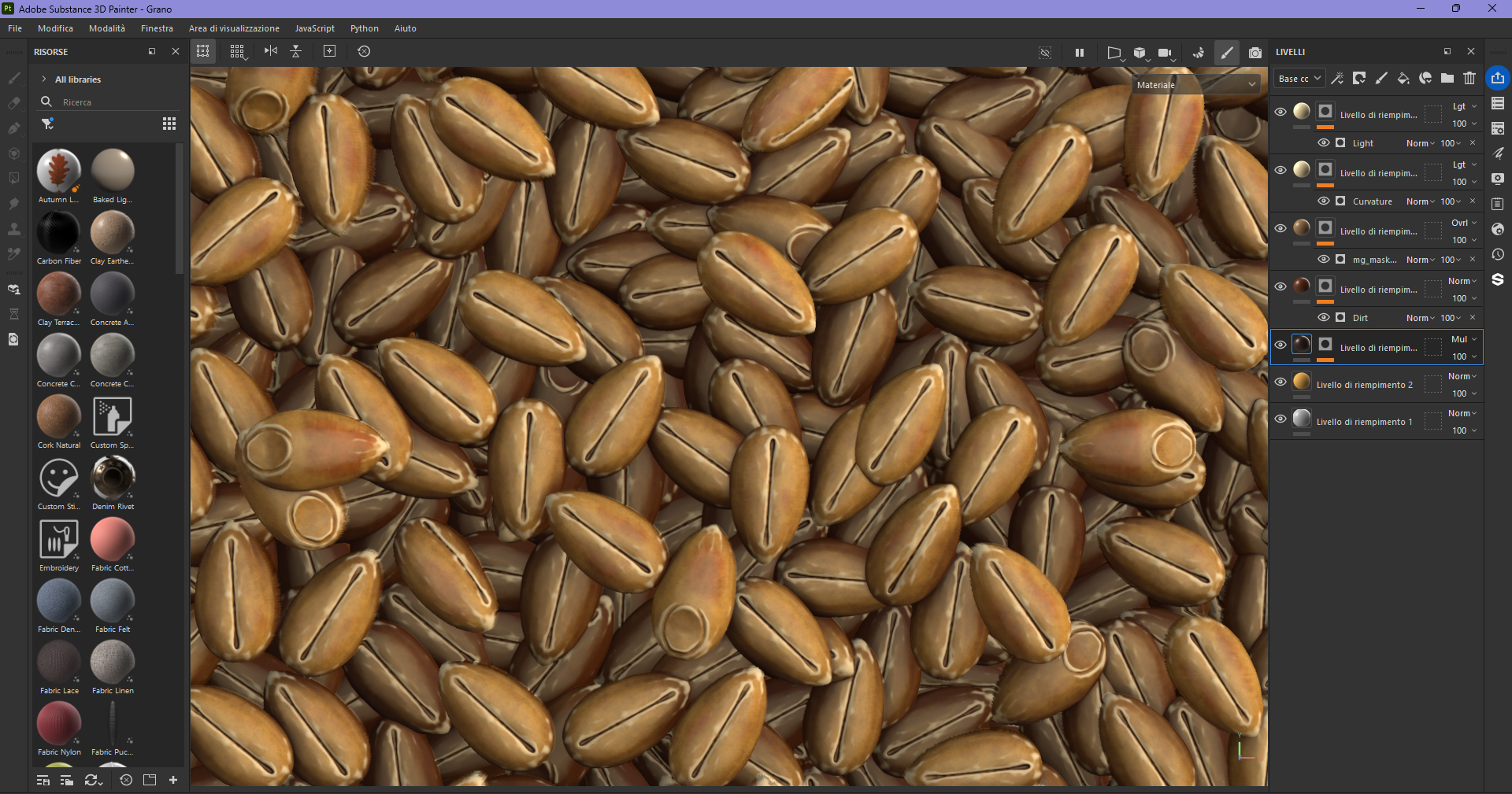 created a tileable grain texture using ZBrush NanoMesh (those wheat/grain details you see in the close-ups) – perfect for scattering across wooden surfaces.