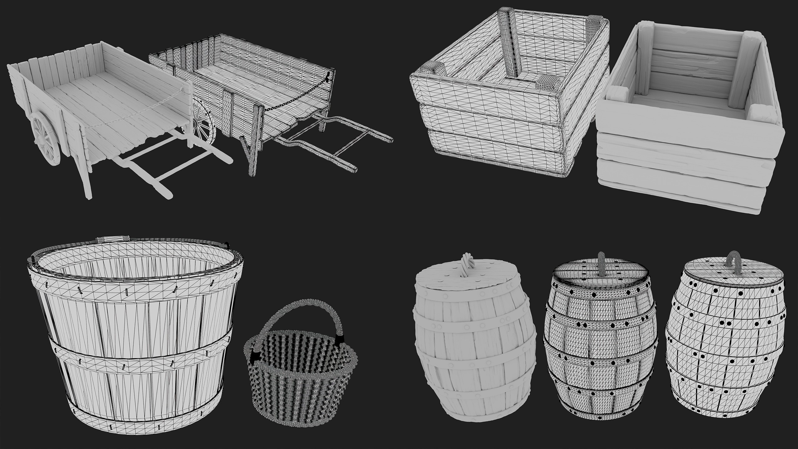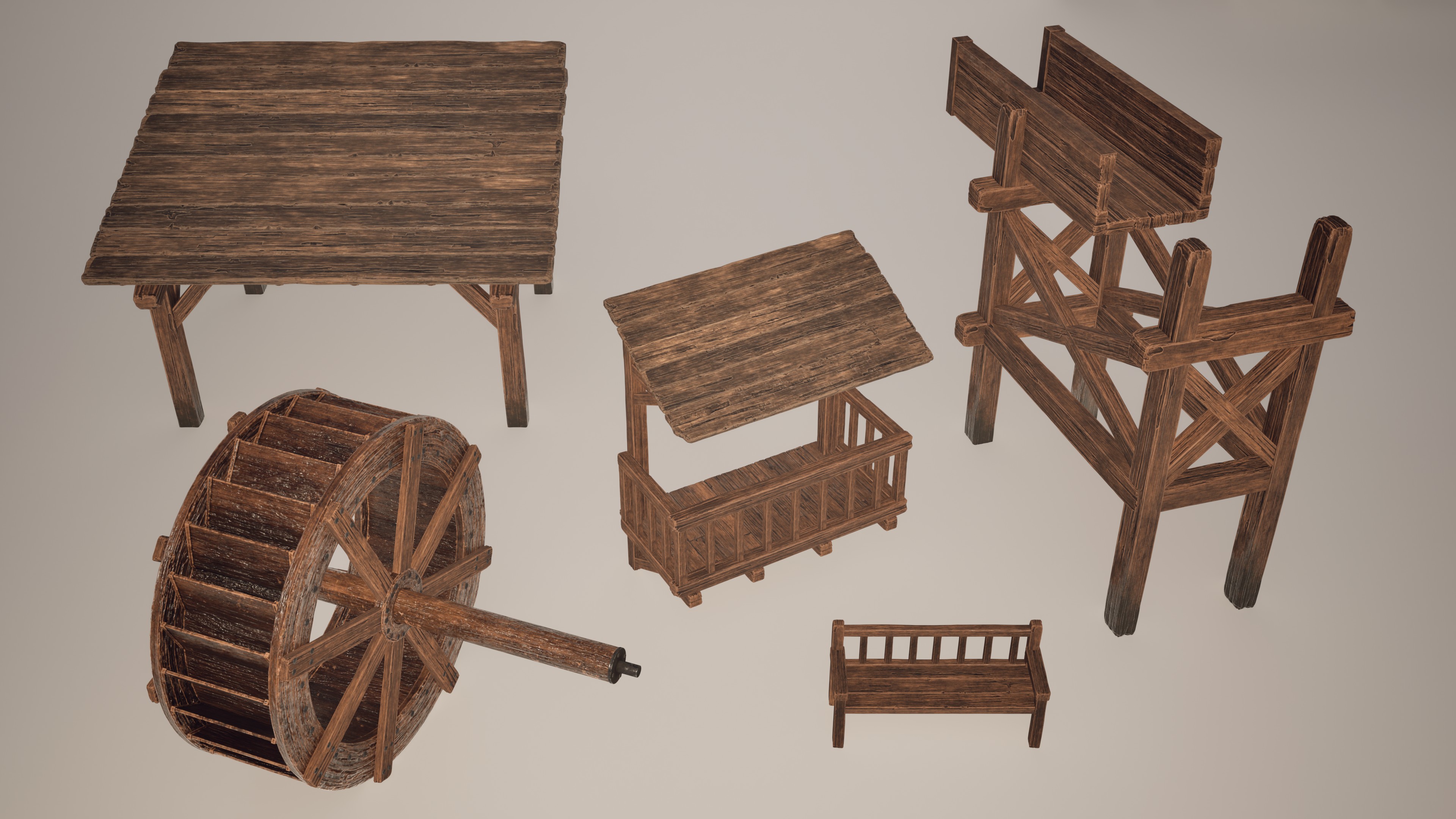 The assets were designed as modular and functional elements for an original fantasy-medieval environment, built in Unreal Engine 5.4. Each object was modeled and textured to maintain stylistic and narrative consistency, with particular attention to materials and natural wear. The dynamic lighting, combined with Niagara systems, simulates flame light and movement in real time. The integration demonstrates not only the visual quality of each prop but also their effectiveness within an immersive and optimized environment, following professional real-time game design pipelines and standards.