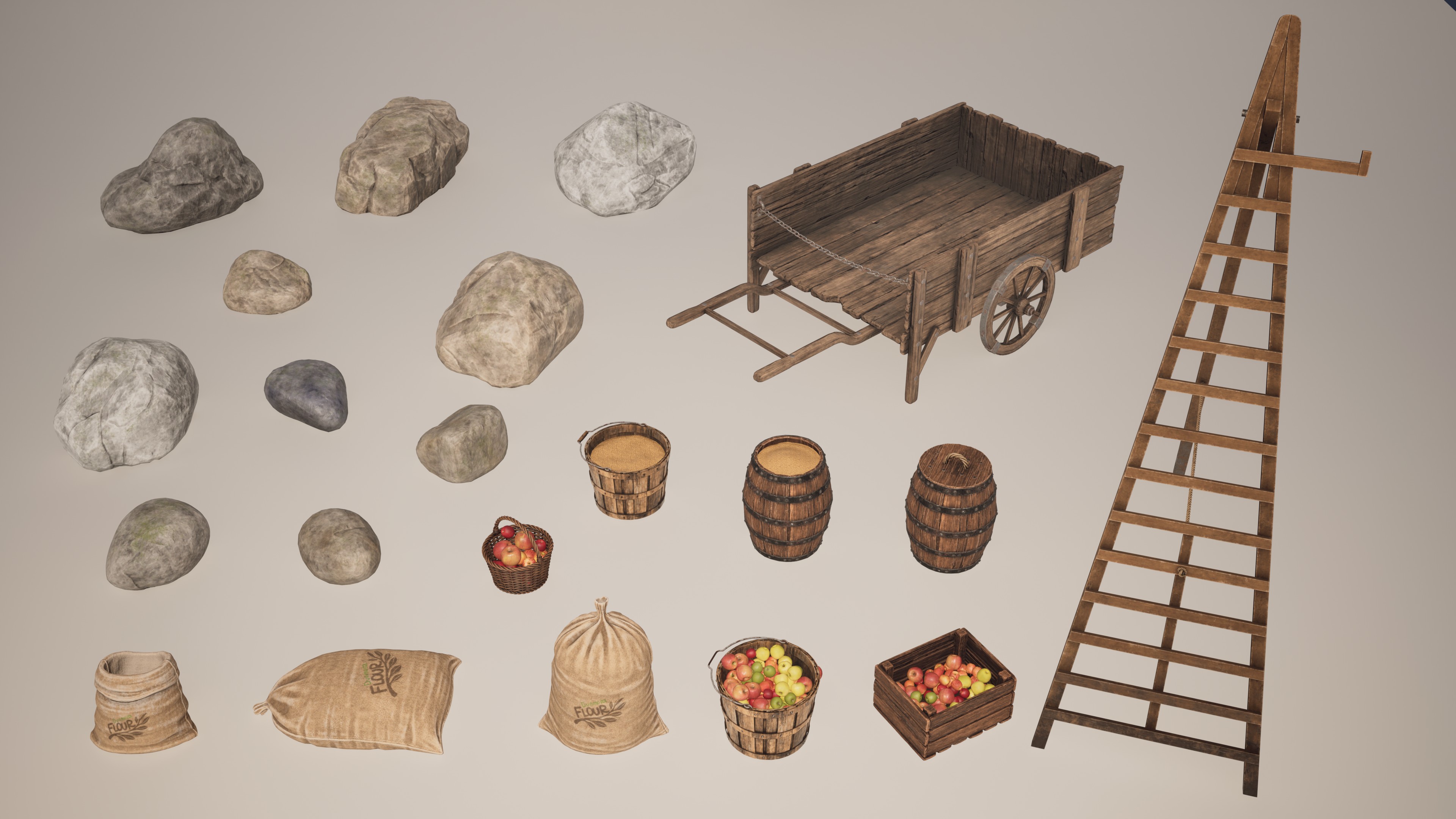 All assets were created following a full production pipeline: high-poly sculpting in ZBrush, retopology in Maya, baking and texturing in Substance Painter, and final integration in Unreal Engine 5.6. The only non-original elements are the apples and grass (Quixel Megascans) and the moss and dirt layers sourced from Substance Assets.
