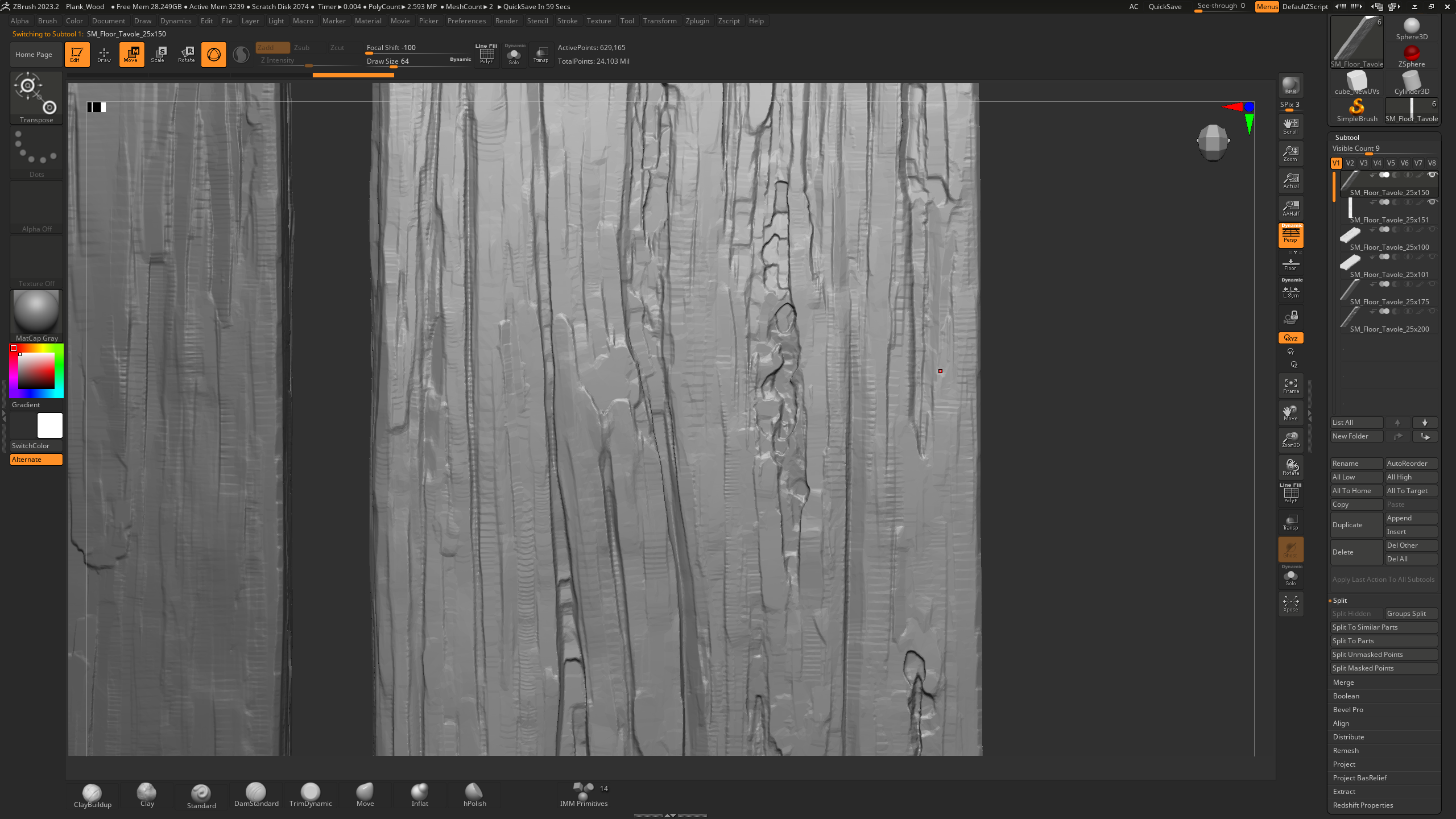 ■ Sculpting 3–4 wood planks in ZBrush