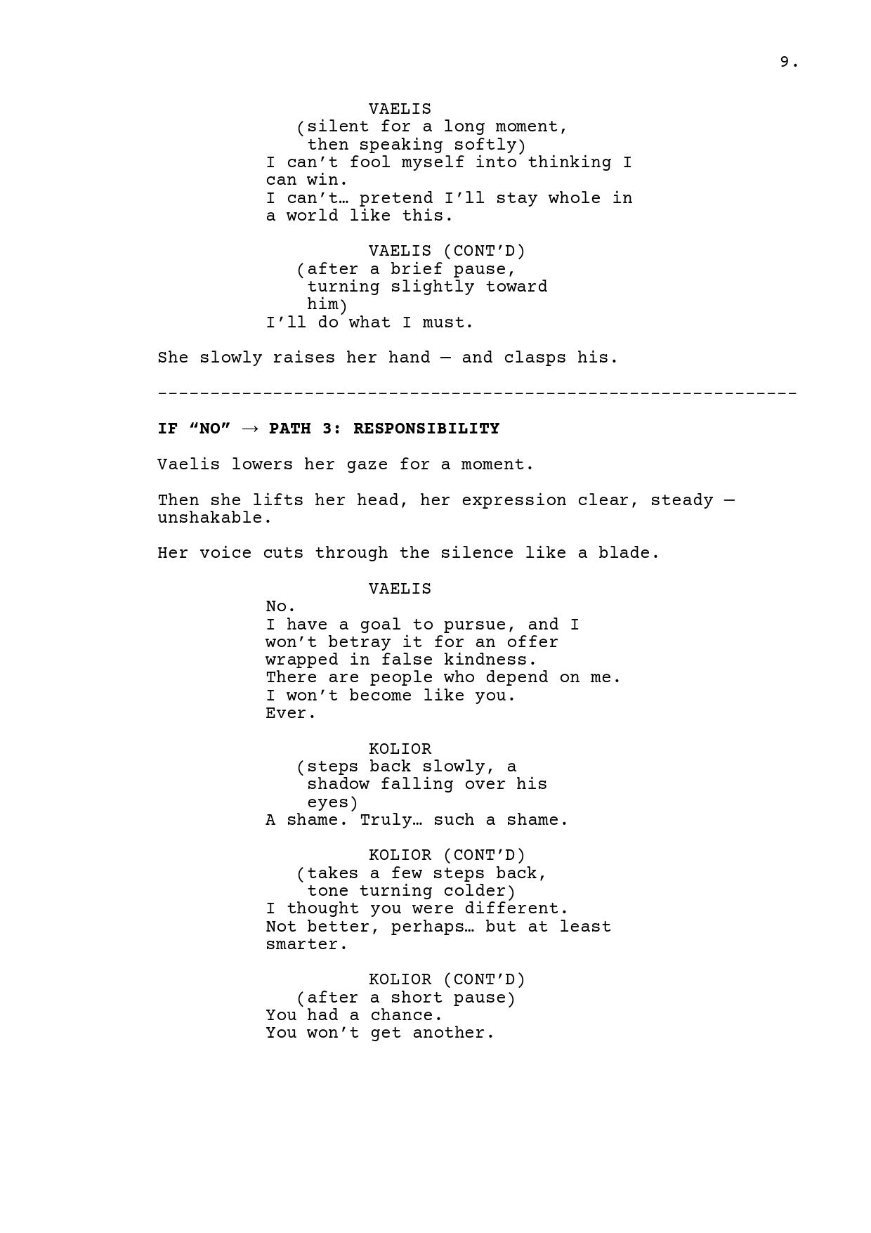 The opening hours present situations designed to test her alignment: these will determine which of the two journeys begins first. In the world of Chardengrave, no one is ever truly neutral. Every choice leaves a mark, pushing Vaelis toward light or shadow.