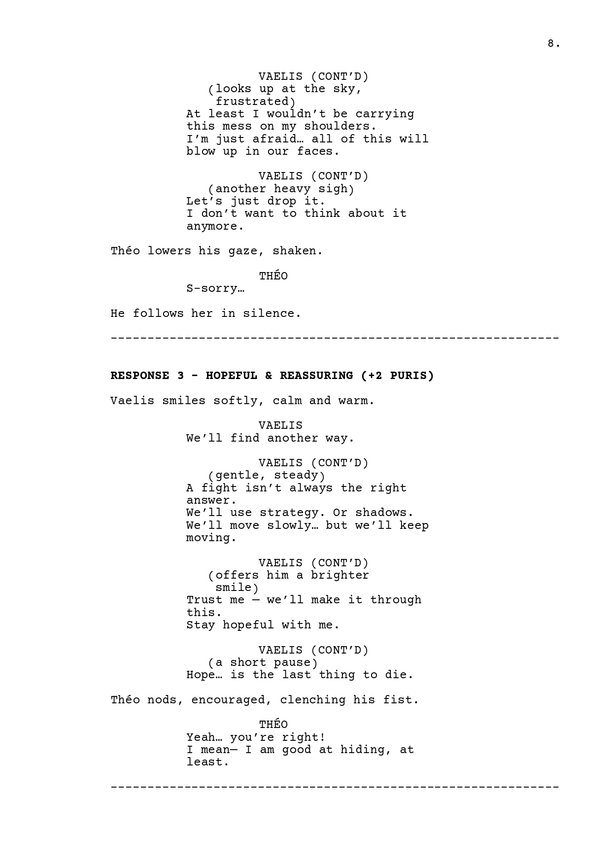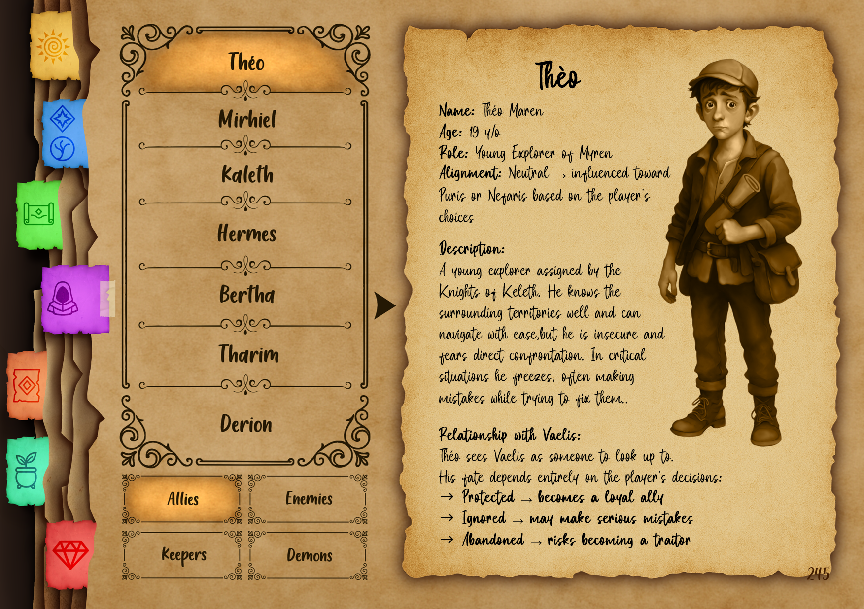 Although Vaelis tries to remain neutral in the face of this divide, her journey forces her to take a side.Every decision — whether small or significant — generates Puris points (Purity – Blue) or Nefaris points (Corruption – Red). And depending on how these values evolve, the path itself changes.